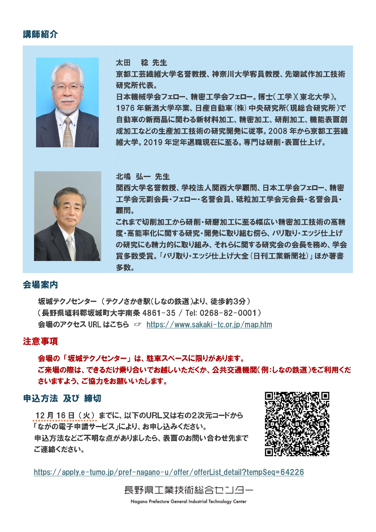 開催場所 公益社団法人 さかきテクノセンター(長野県埴科郡坂城町大字南条4861