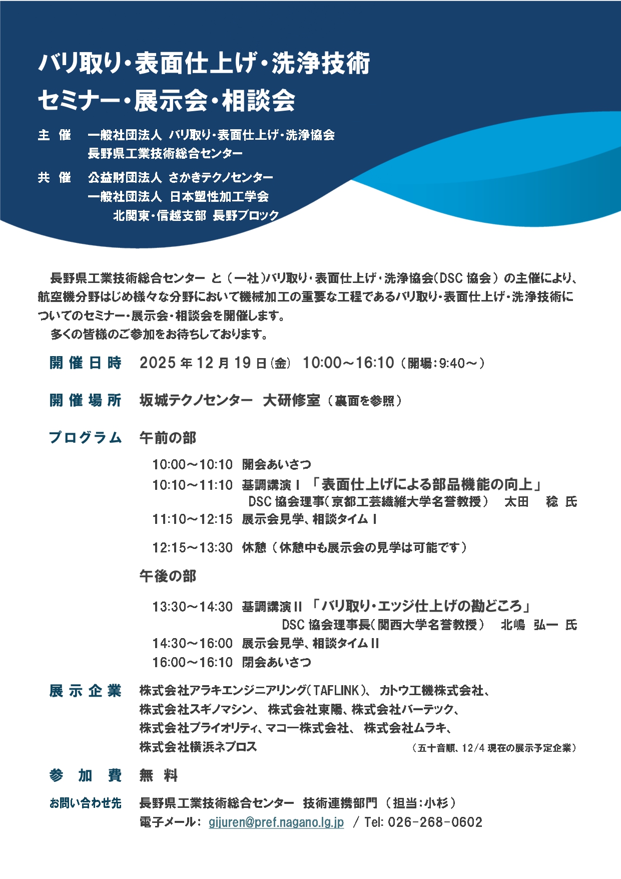 主催 (一社)バリ取り・表面仕上げ・洗浄協会